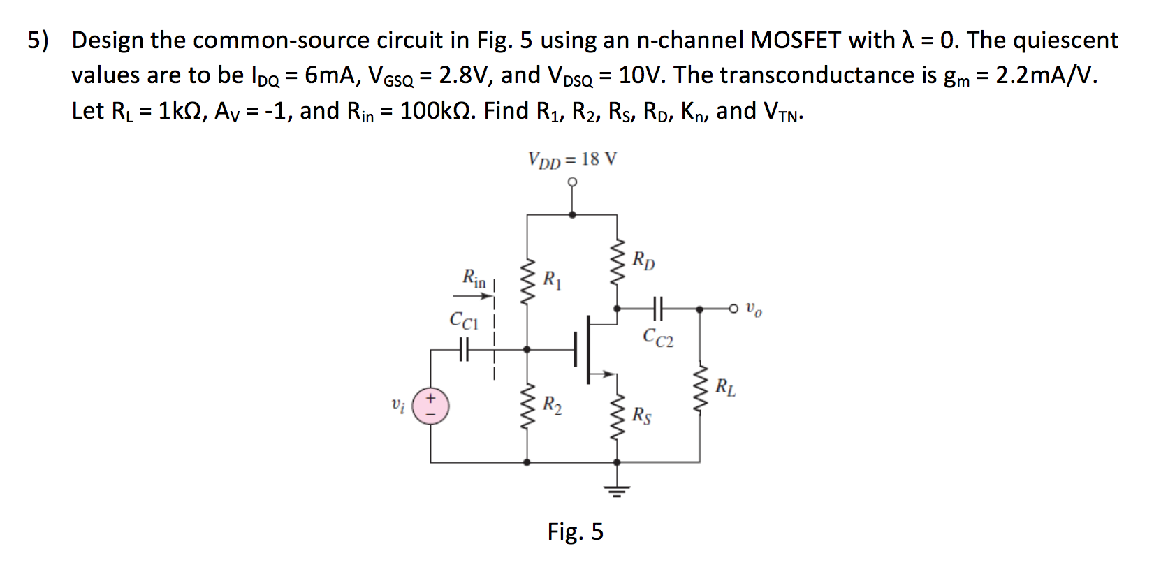 Solved Design the common-source circuit in Fig. 5 using an | Chegg.com