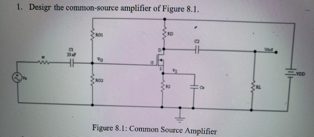 Solved 1. Desigr the common-source amplifier of Figure 8.1 | Chegg.com