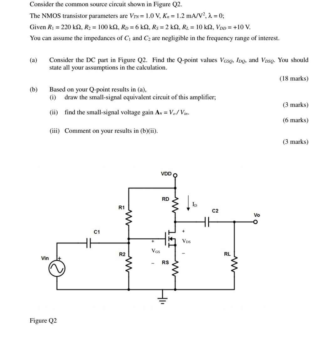 Solved For the NMOS common-source amplifier in Figure Q2.1, | Chegg.com