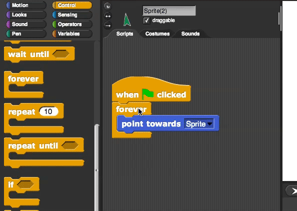 Drag code from one sprite's Code area to another sprite in the Sprite ...