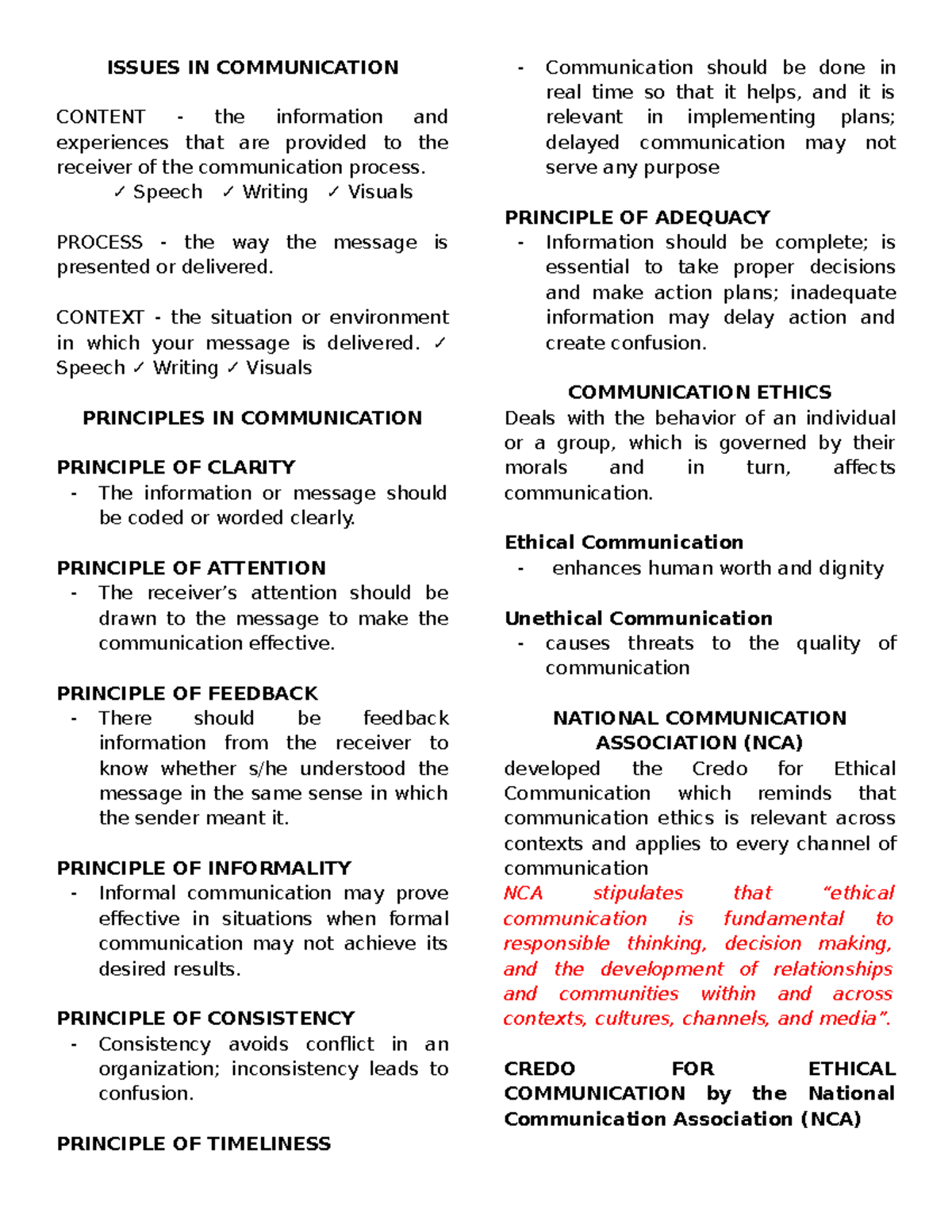 COMM 101: Issues in Communication - Principles & Ethics Review - Studocu