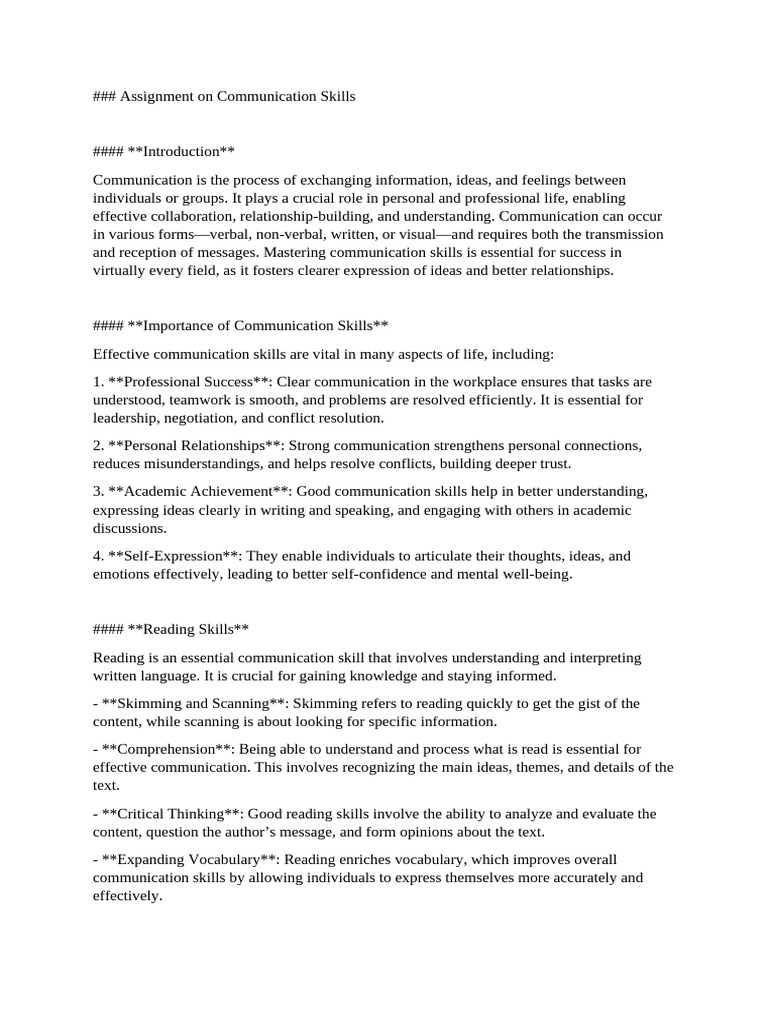 Assignment 1 Importance of Communication Skills | PDF | Communication ...