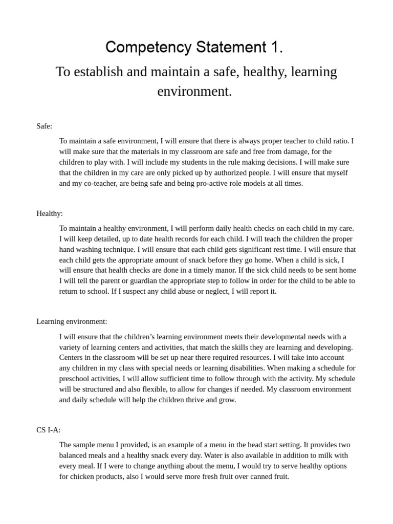 CS 1 - Competency Statement on Creating a Safe & Healthy Learning ...