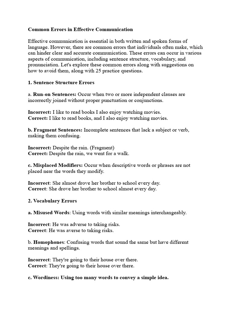 Common Errors in Effective Communication | PDF | Stress (Linguistics ...