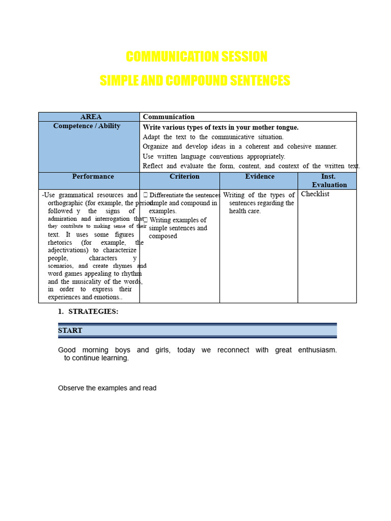 Communication Session Simple and Compound Sentences | PDF | Sentence ...