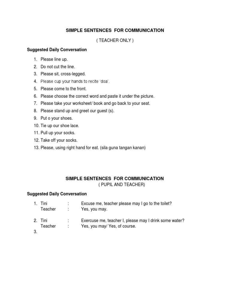 Simple Sentences For Communication | PDF