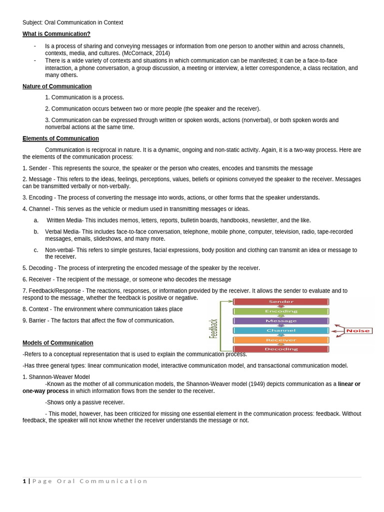 SOLUTION: Cmst 230 unit01 reading communication model fact sheet ...