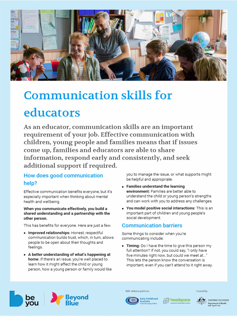 Communication Skills For Educators Fact Sheet | PDF | Communication ...