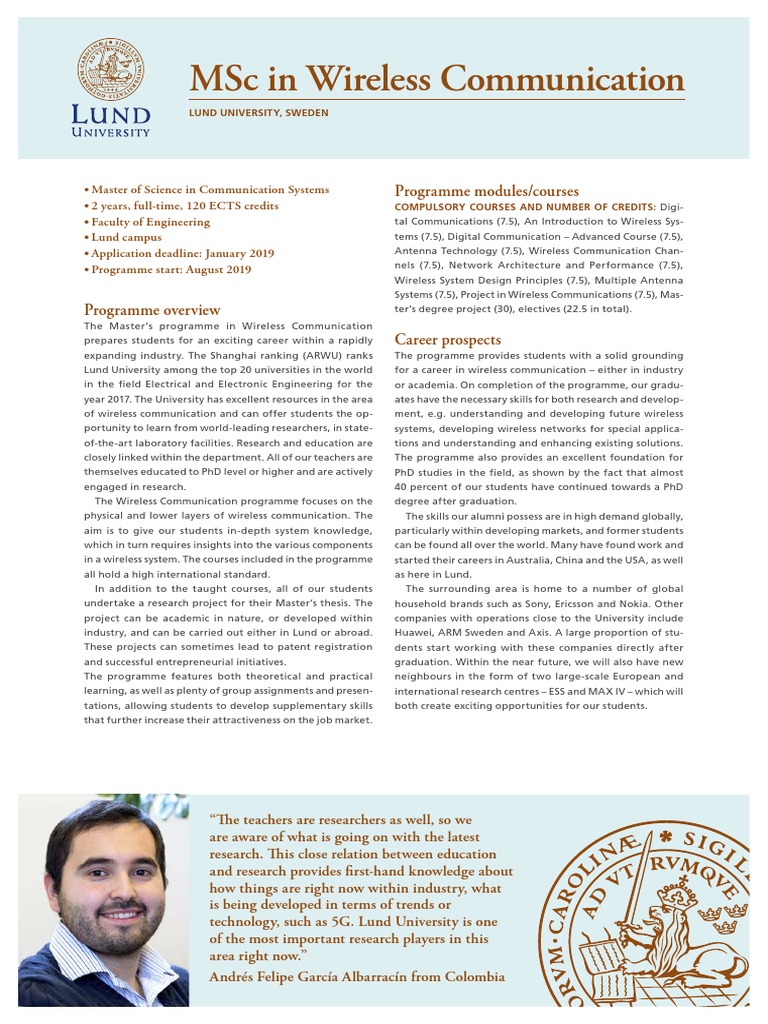 Wireless Communication 2019 Fact Sheet | PDF | Master's Degree | University