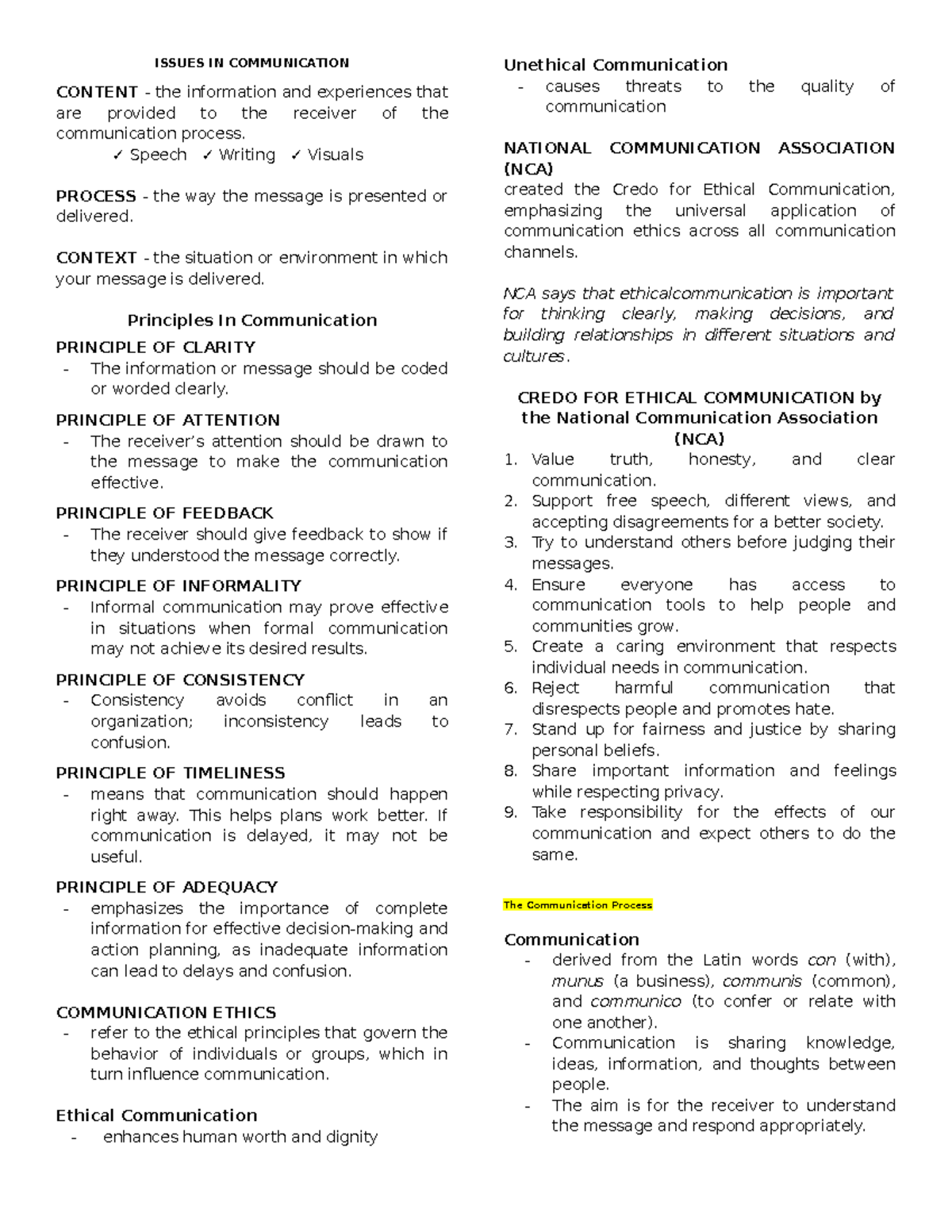 ISSUES IN COMMUNICATION: Principles and Ethics Overview (COMM 101 ...