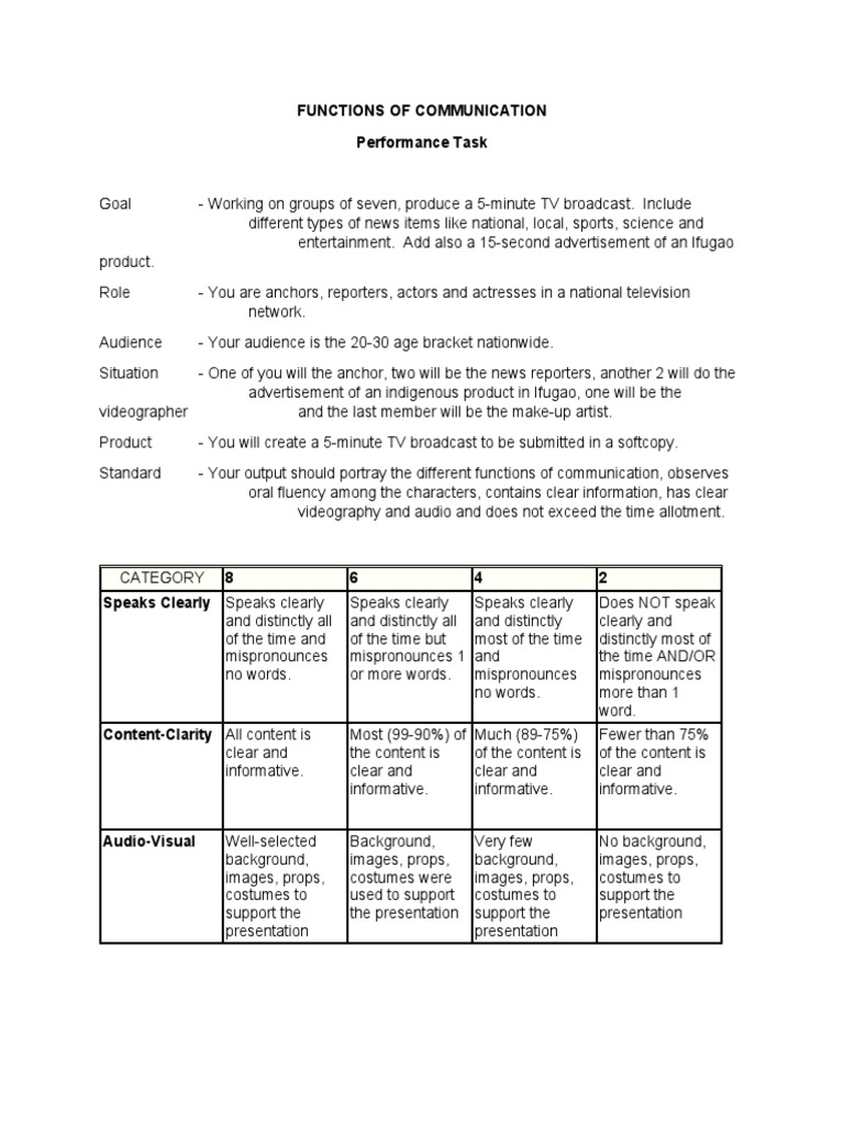 Assessing The Performance of Communicative Tasks | PDF | Word | Vocabulary