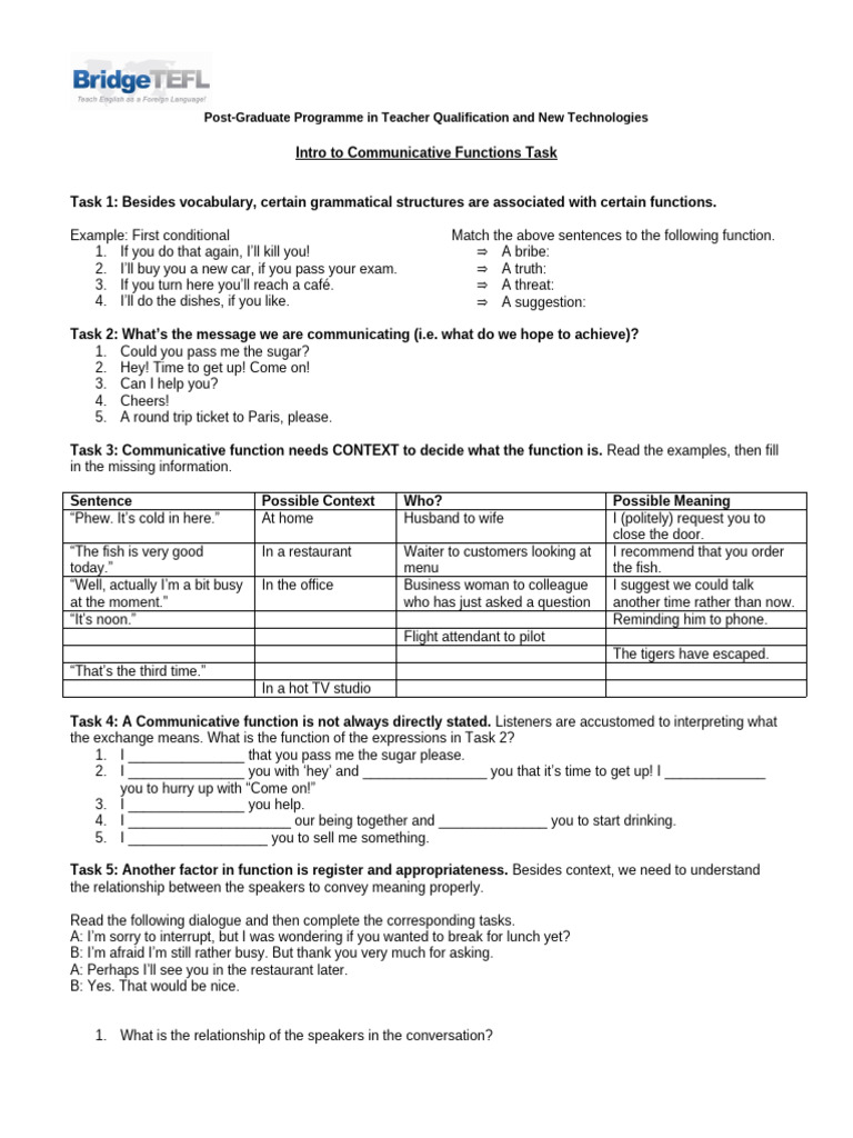 Intro To Communicative Functions Task | PDF | Linguistics | Learning