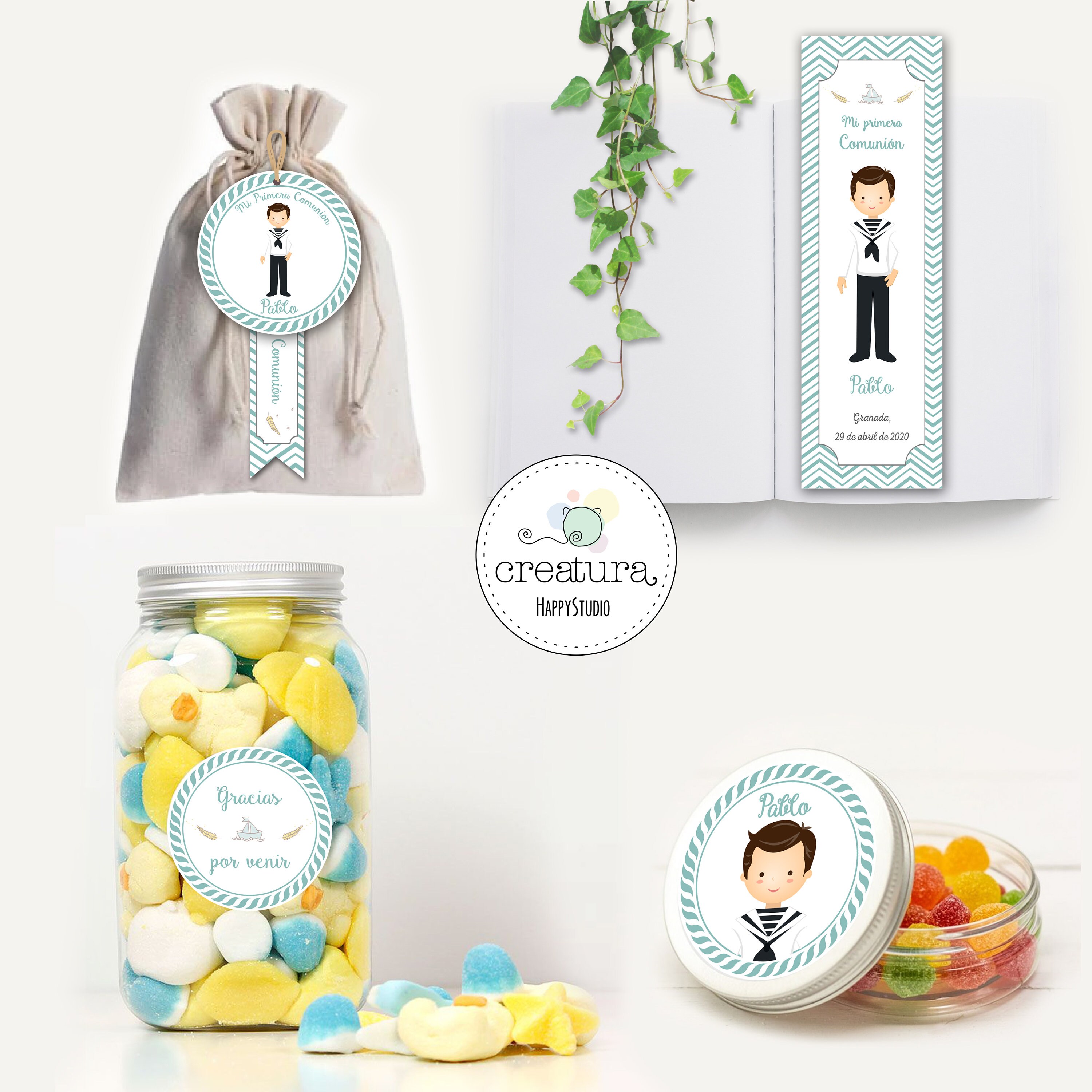 Printable Bookmark and Labels First Communion Sailor Boy and Twin ...