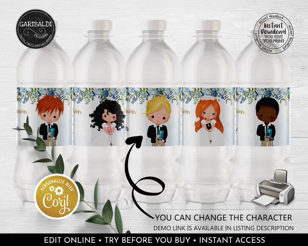 First Communion Water Bottle Label, Girl Communion Label Editable ...