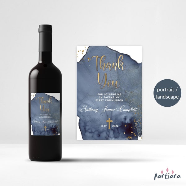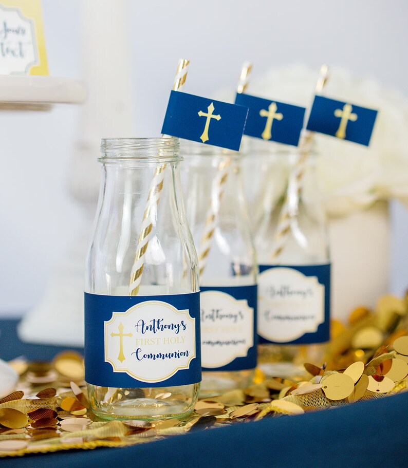 Navy and Gold First Communion Drink Labels - Printable Studio