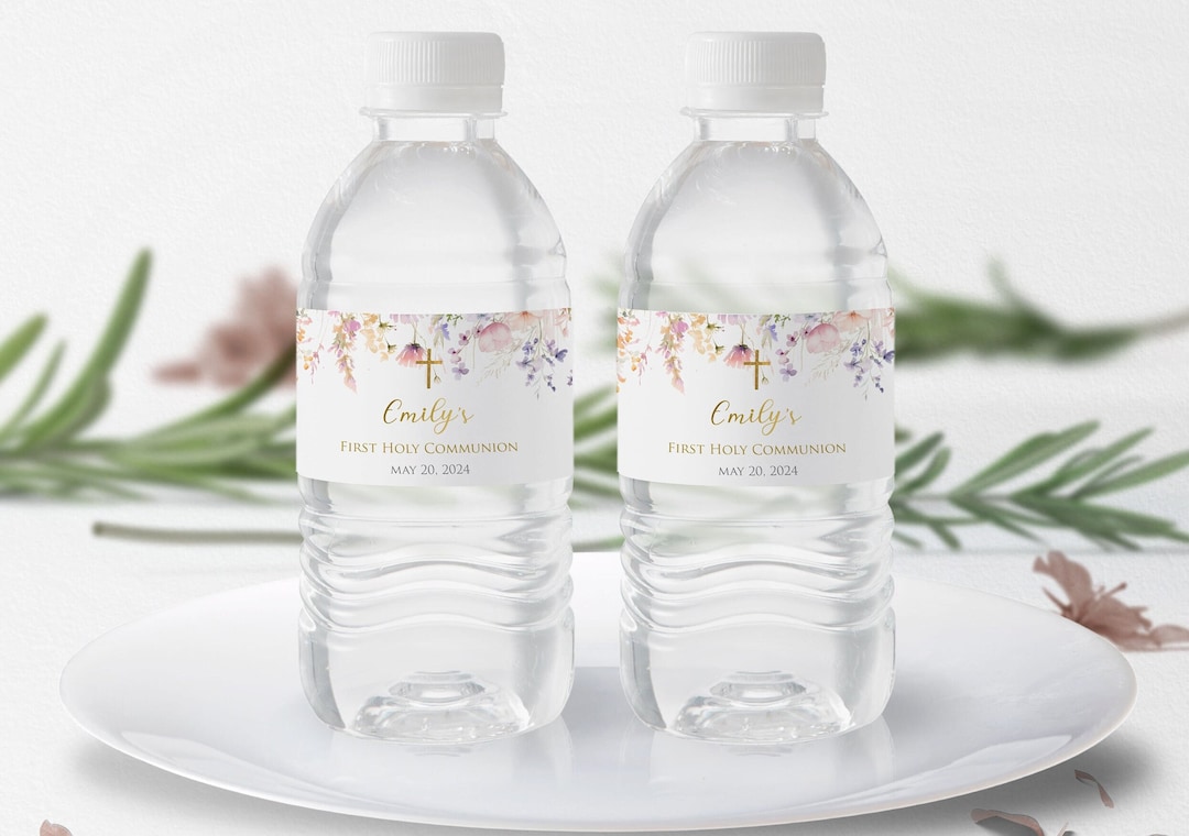 First Holy Communion Water Bottle Label Girl Communion - Etsy