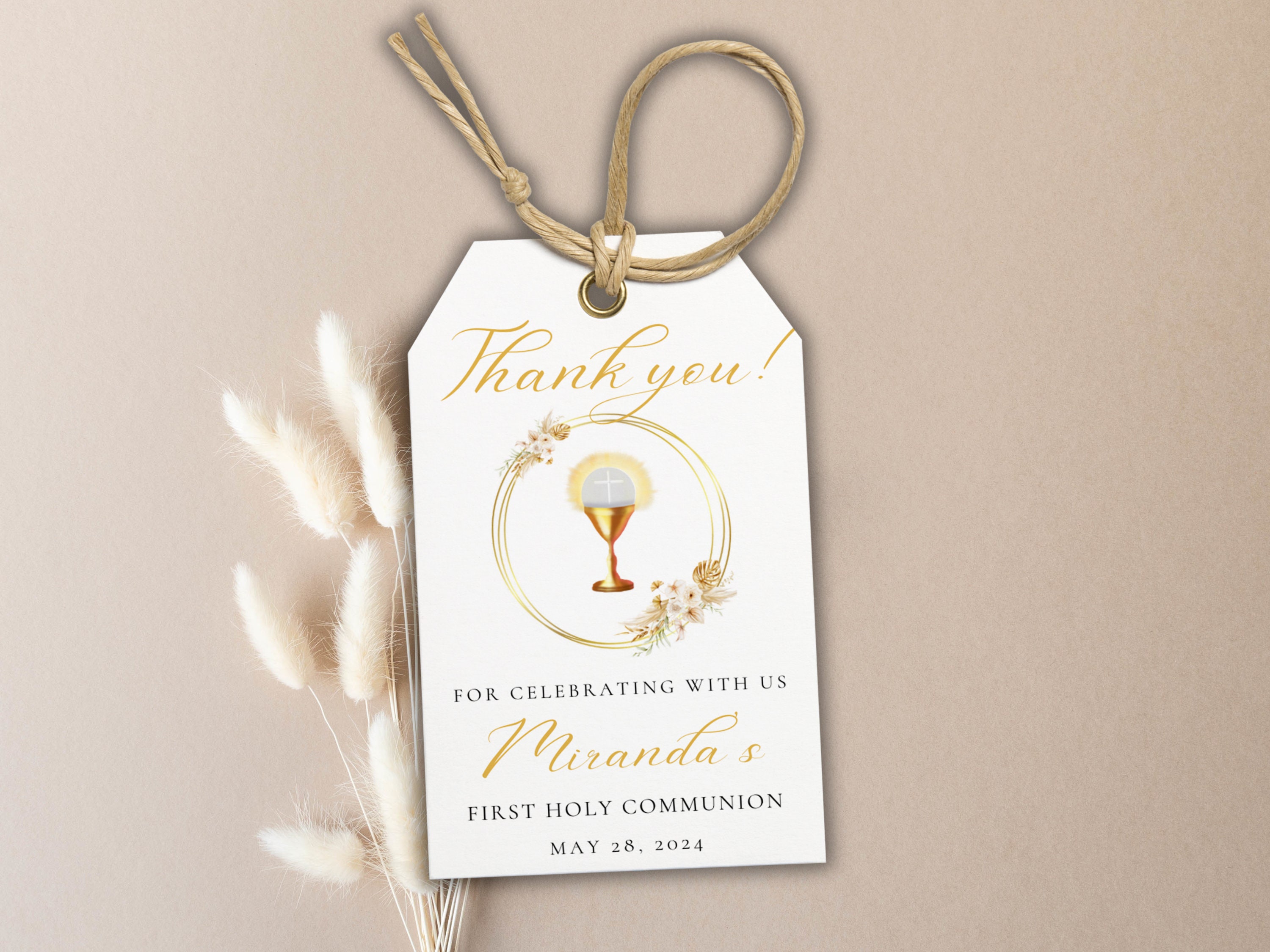 First Holy Communion Favor Tag template, editable First Communion Thank ...