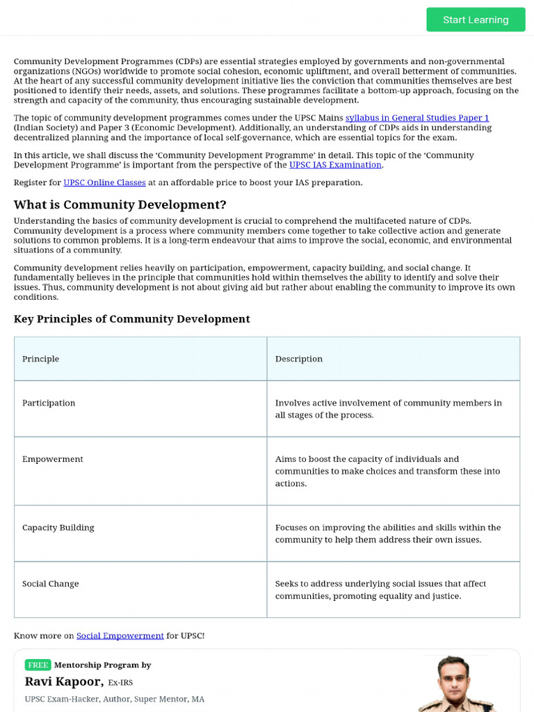Community Development Programme - Objectives, Features & More | PDF