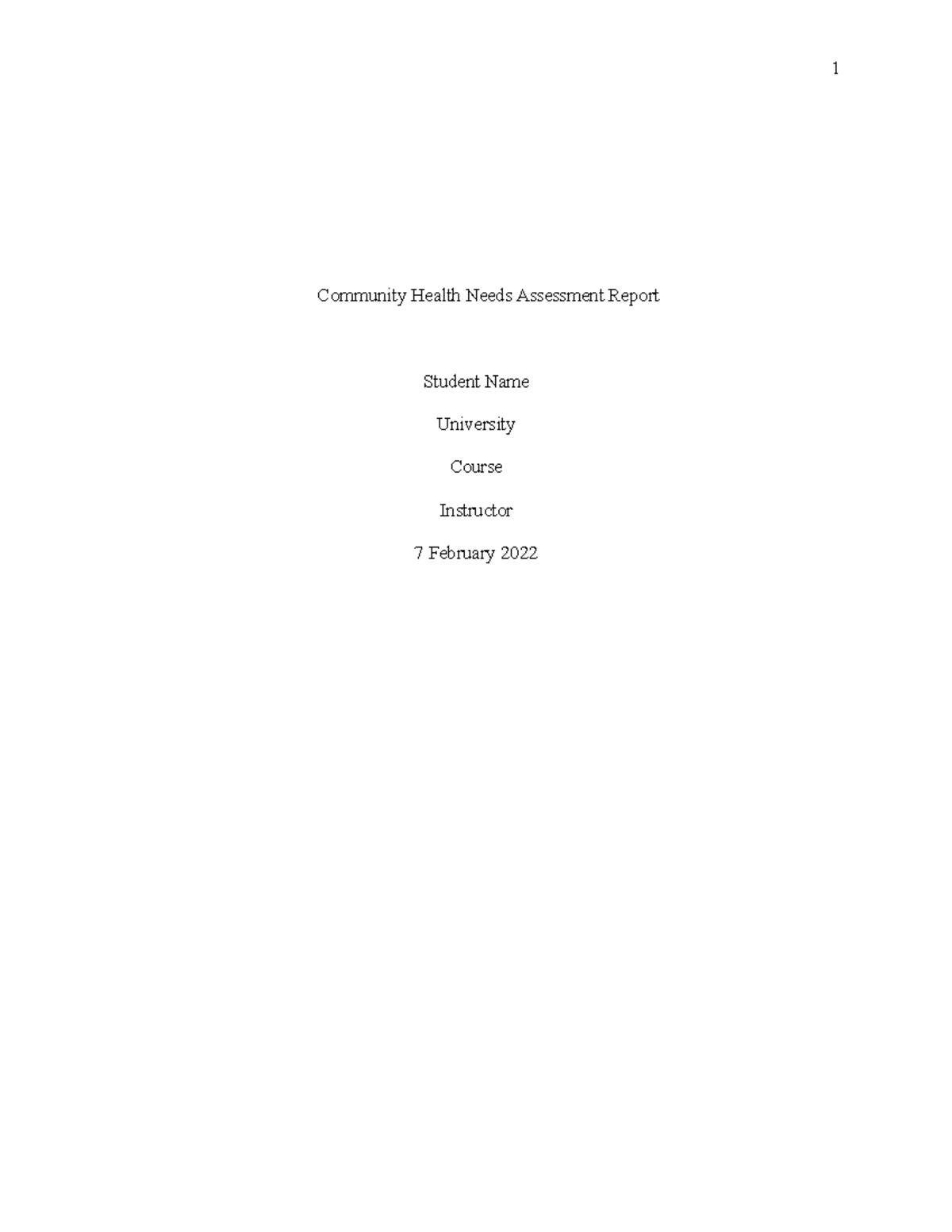 Community Assessment Report Template and Guidelines | Course Hero