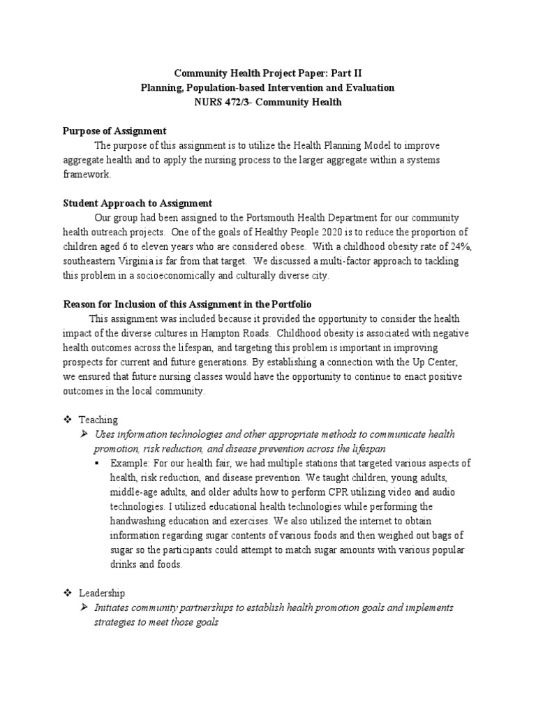Sample CA Paper - This is a community health project assignment. - 1 ...