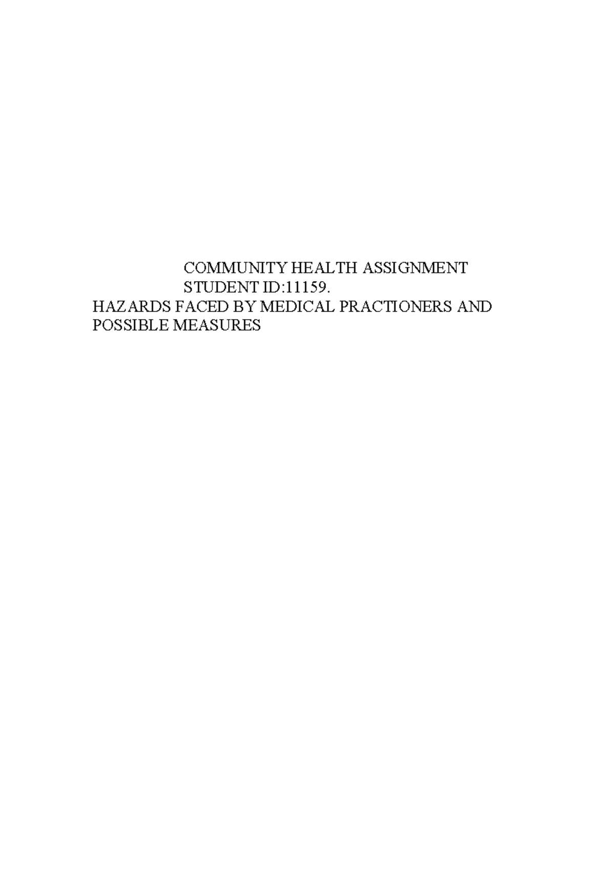Community Health Students Assignment | PDF