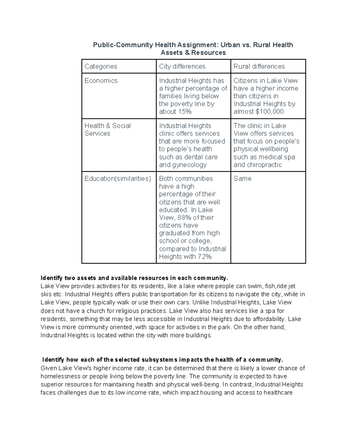 Public-Community Health Assignment: Urban vs. Rural Resources Analysis ...