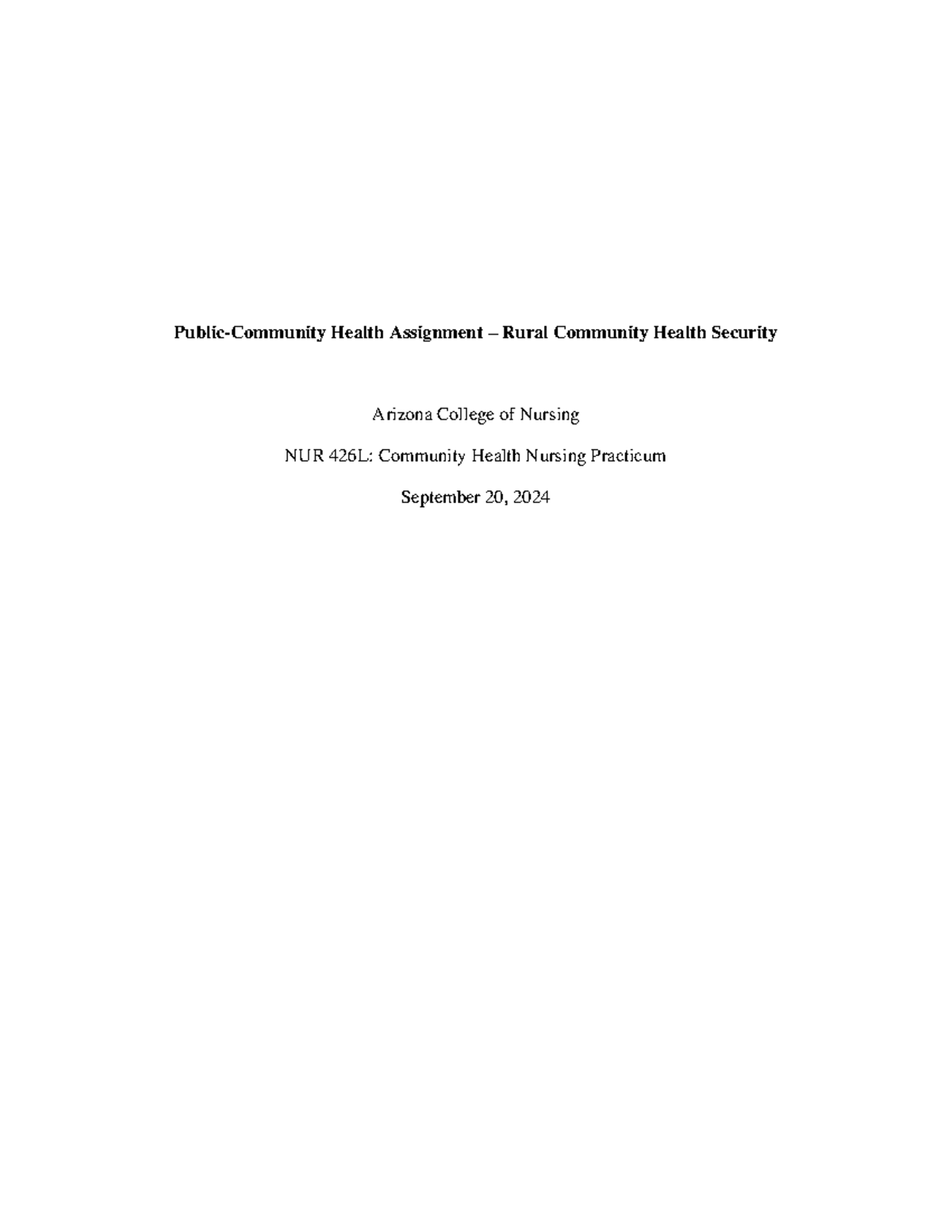 NUR 426L Public-Community Health Assignment: Rural Health Security ...