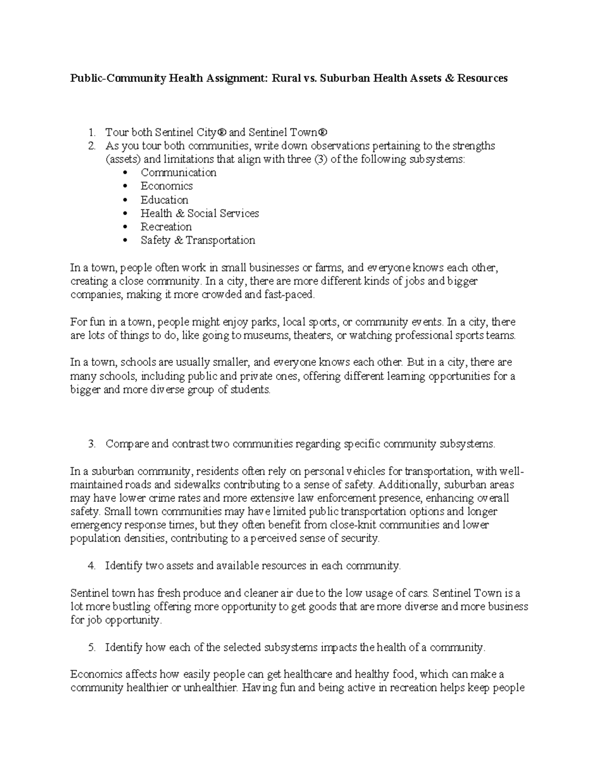 Public-Community Health Assignment: Rural vs. Suburban Health Resources ...