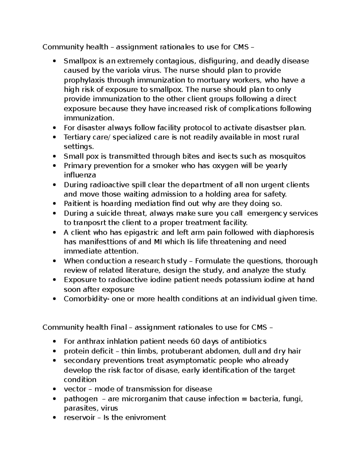 Community Health Final Assignment Rationales for CMS - Studocu