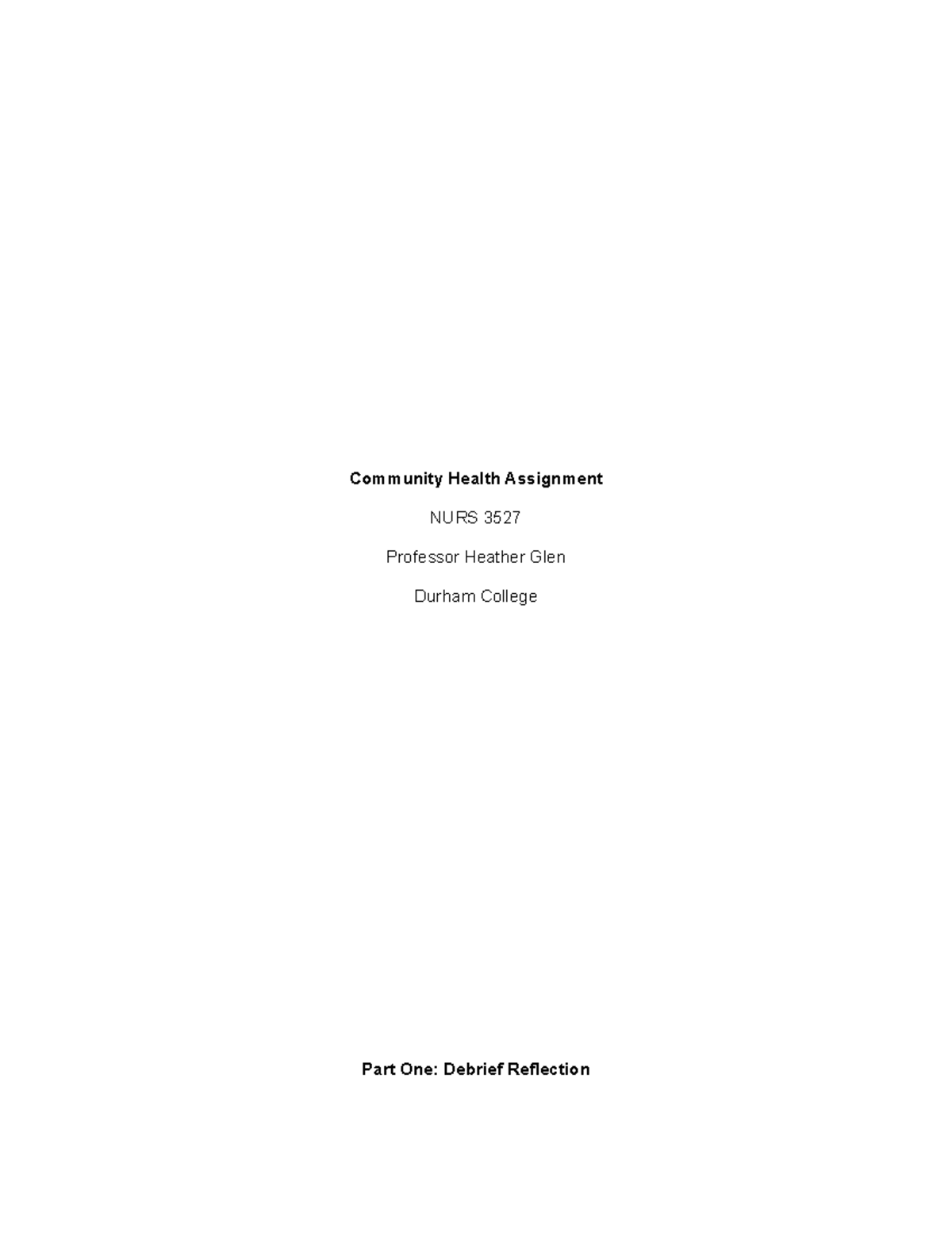 Community Health Assignment Reflection: Insights from NURS 3527 - Studocu