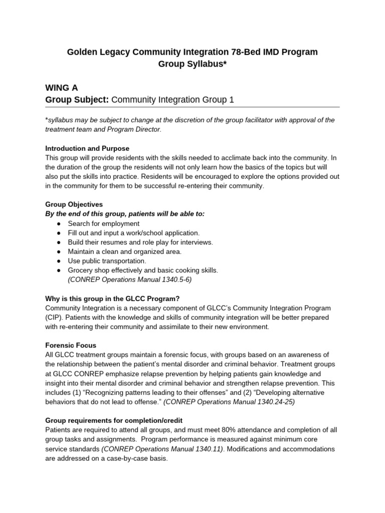 Syllabus - Community Integration Group I | PDF | Mental Disorder | Behavior