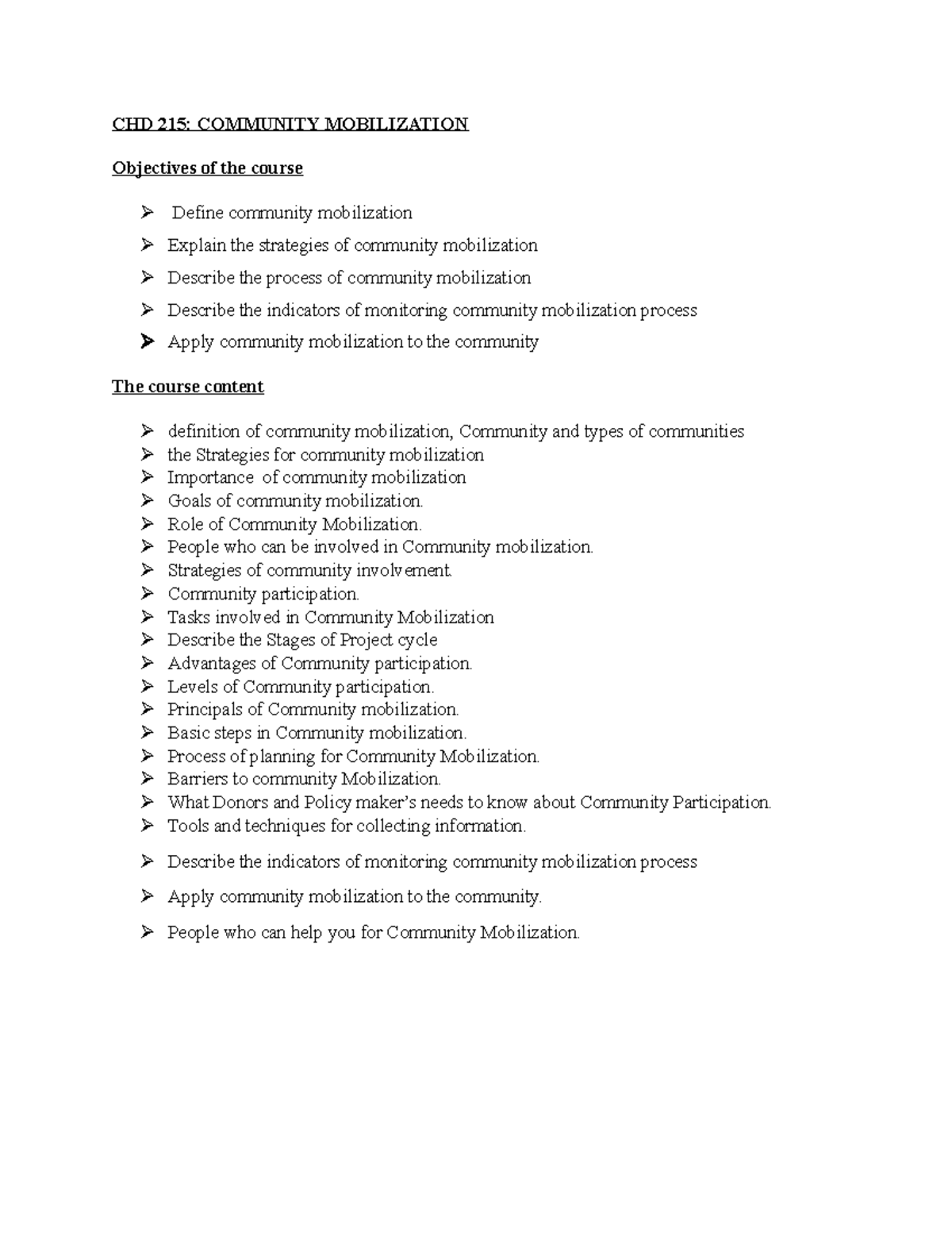 Community Mobilization Strategies and Processes CHD 215 - Studocu