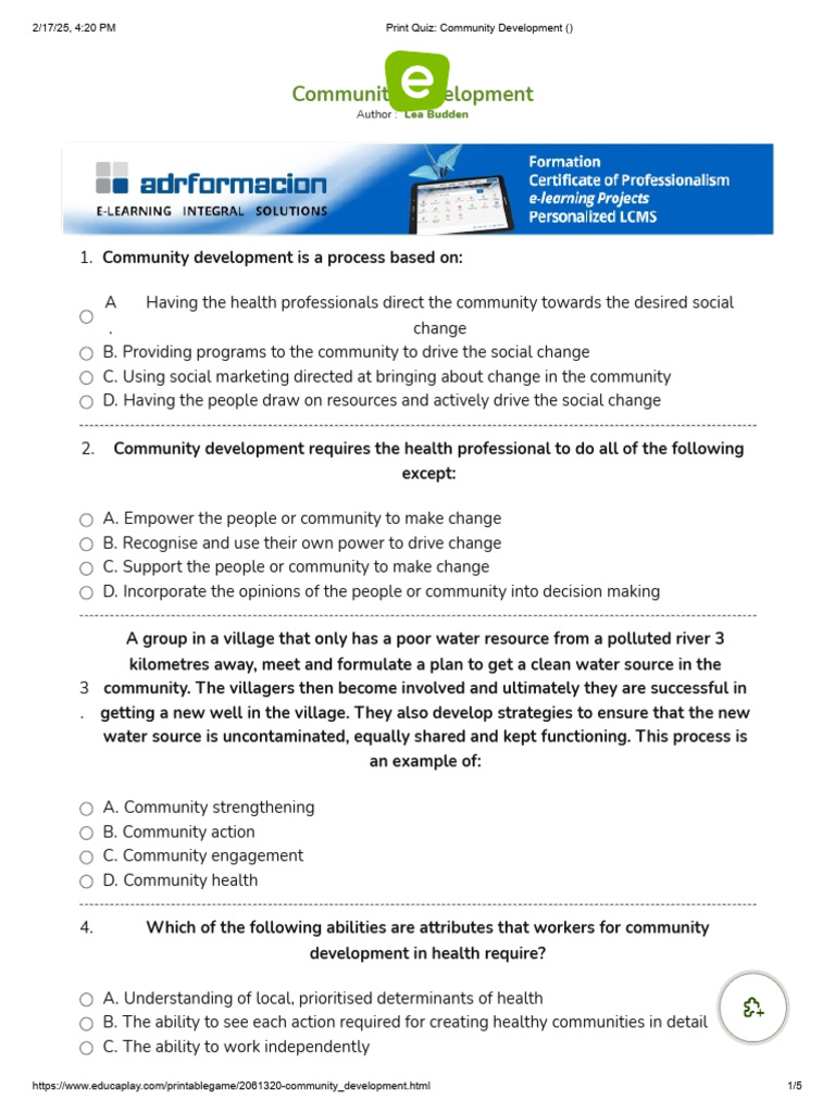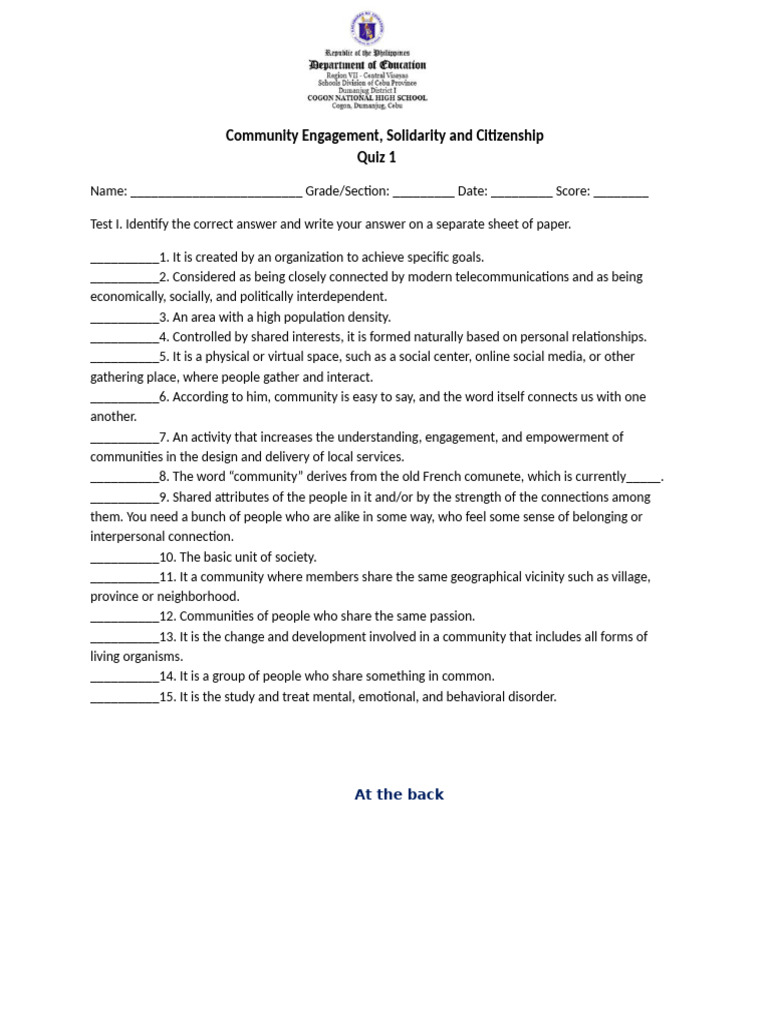 Q1 Module 1 - Quiz 1 Community Engagement - Questions | PDF | Community ...