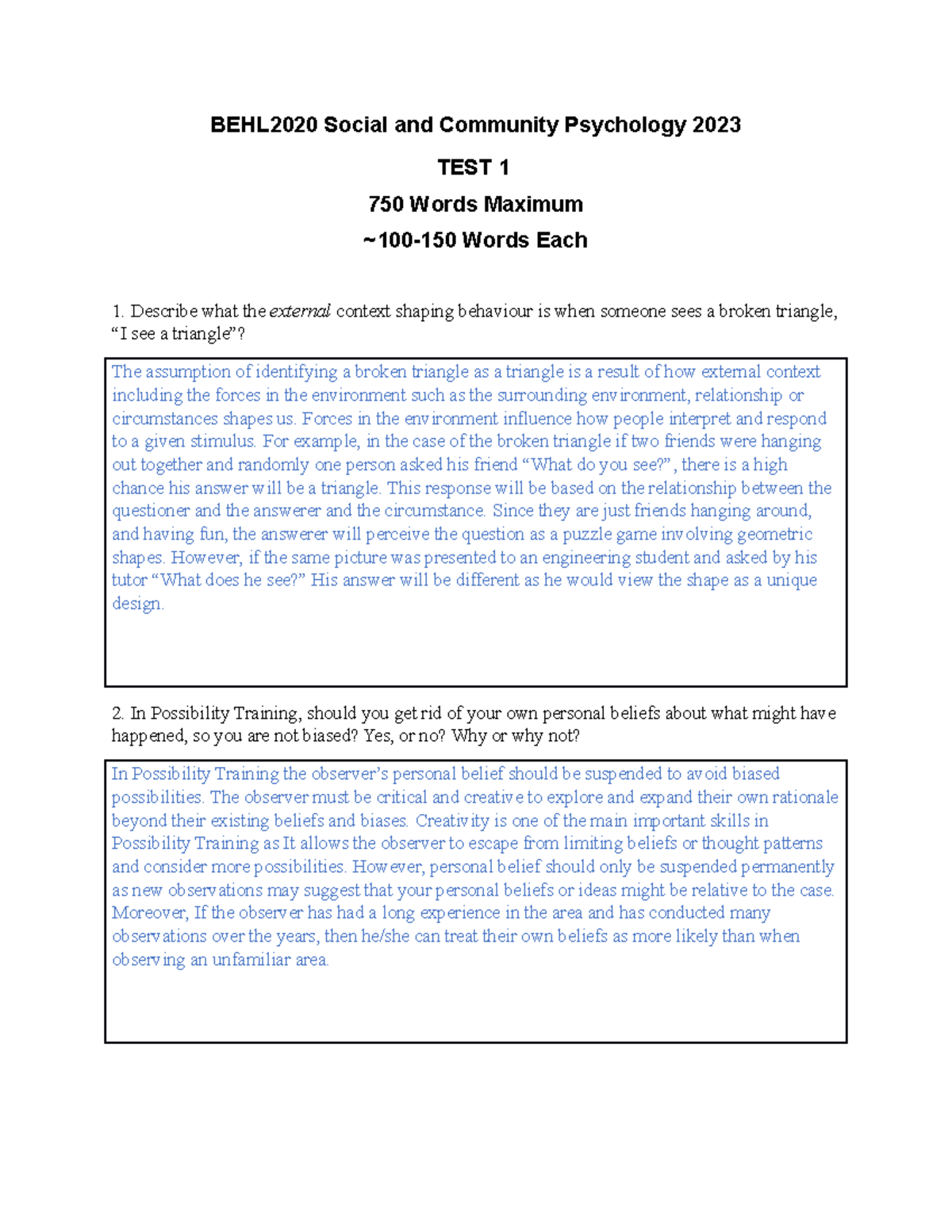 BEHL Social and Community Psychology test 1 - BEHL2020 Social and ...