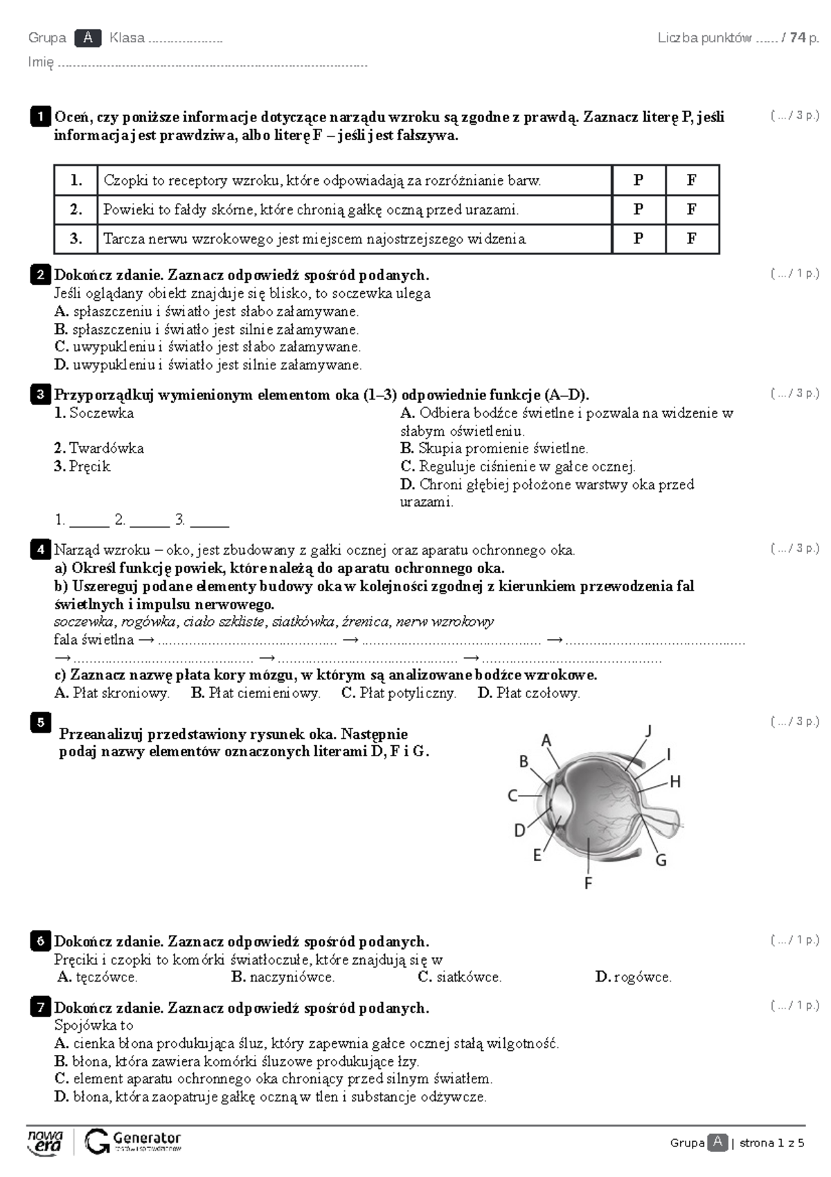 8. Narządy zmysłów - Test z punktacją - Studocu