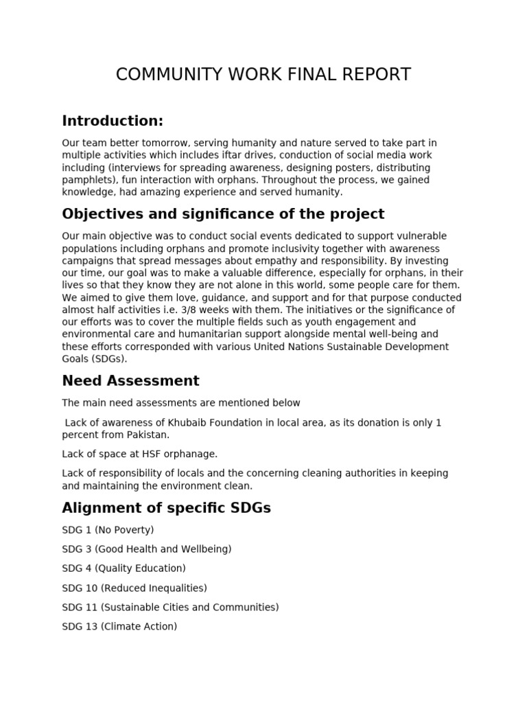 Community Work Final Report | PDF | Sustainability | Orphanage