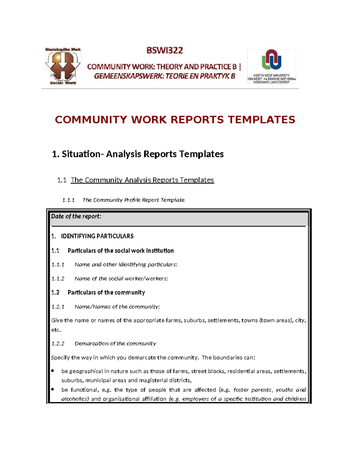 Community Work Reports Templates - UNIT 5 Overview and Guidelines - Studocu