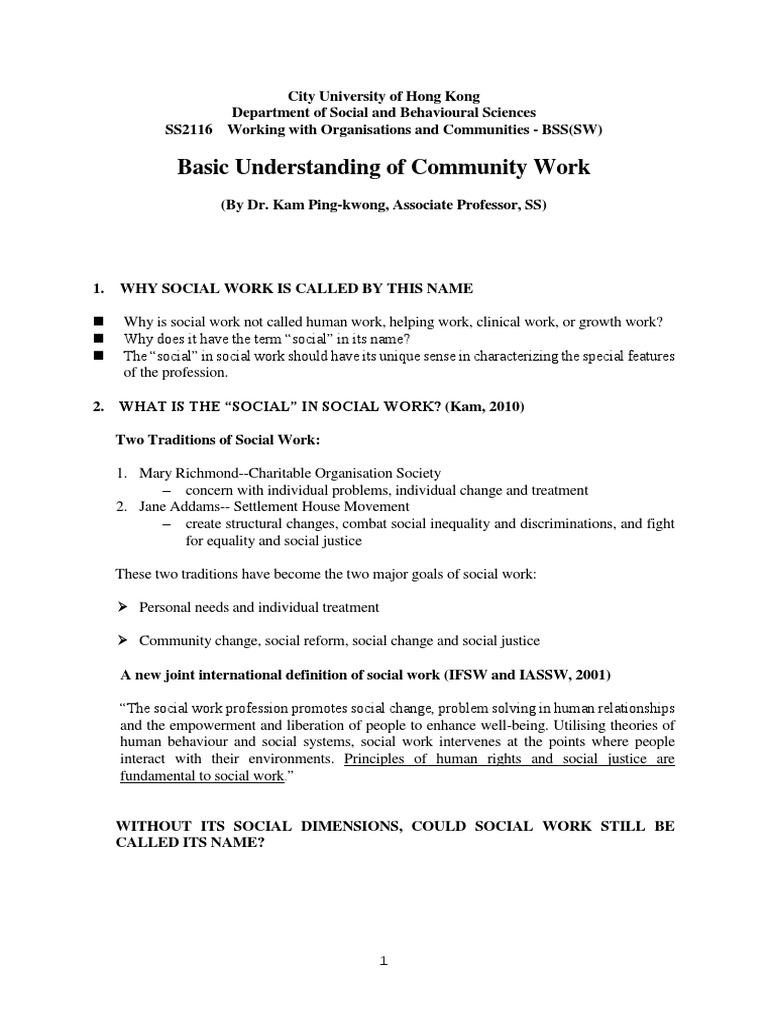 Completed Community WORK Notes - SOCIAL WORK 278 COMMUNITY WORK ...