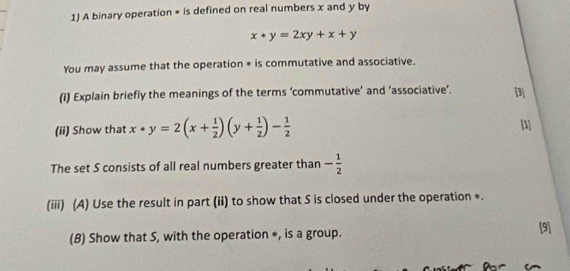Solved: A binary operation * is defined on real numbers x and y by x*y ...