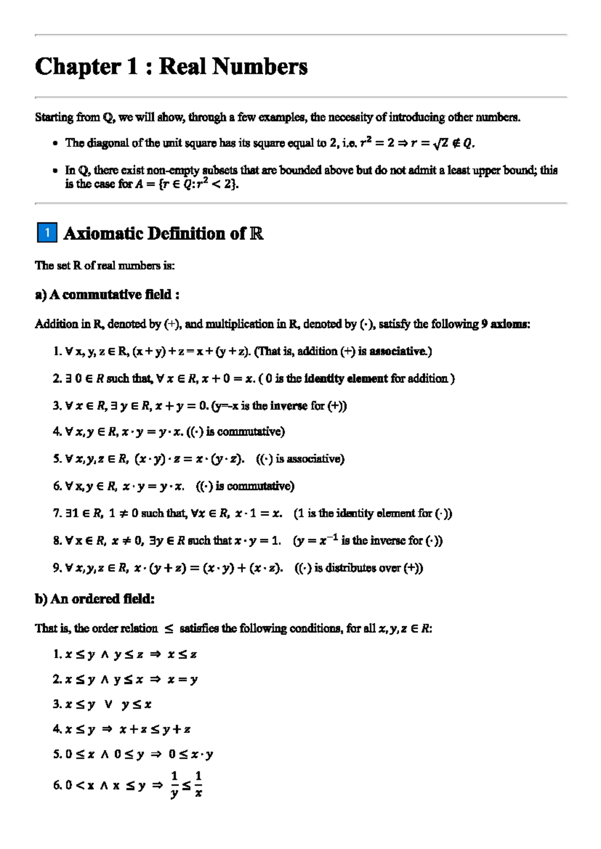 Chapter 1: Real Numbers - Axiomatic Foundations and Properties - Studocu