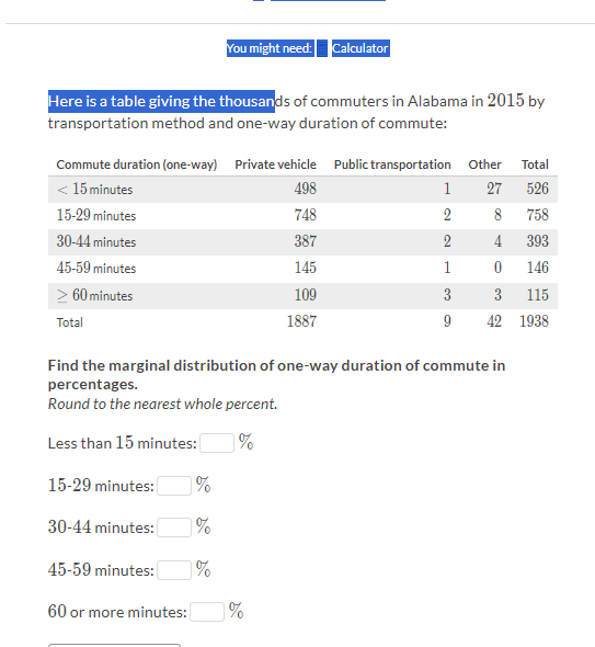 Solved Here is a table giving the thousands of commuters in | Chegg.com