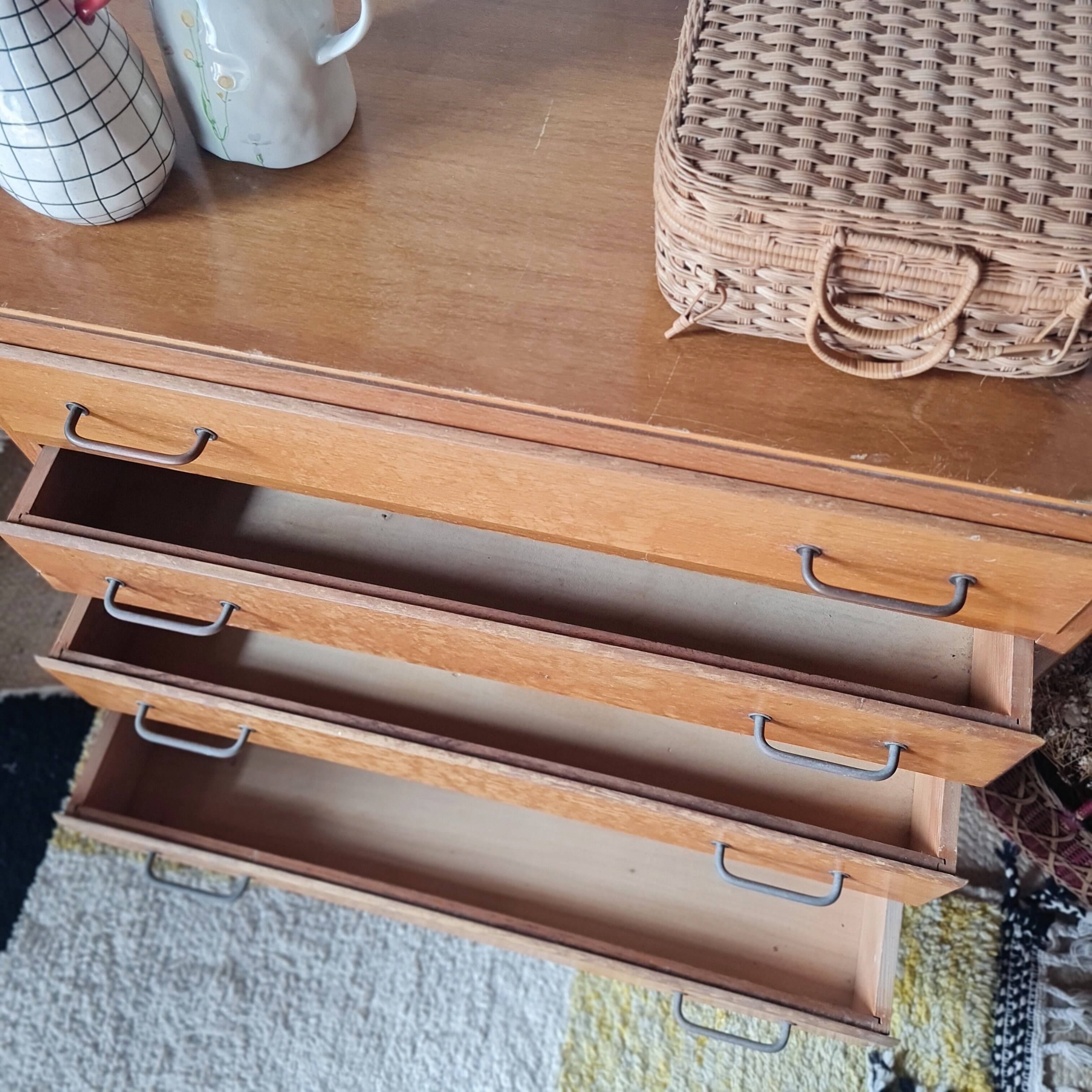 Commode 3 tiroirs 1 porte Seventies Bois et blanc