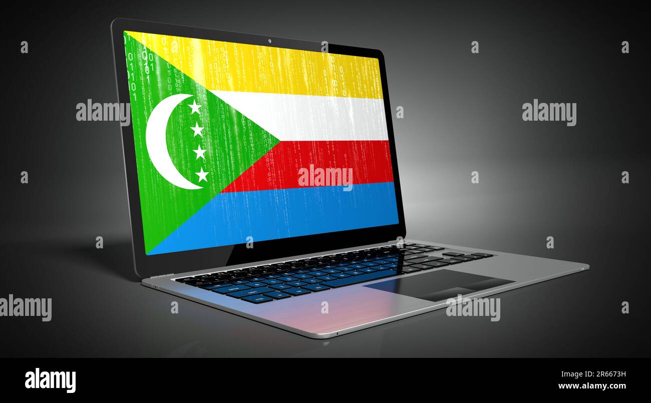 Comoros - country flag and binary code on laptop screen - 3D ...