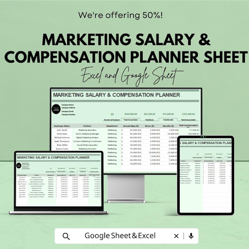 Marketing Salary & Compensation Planner - Excel and Google Sheet ...