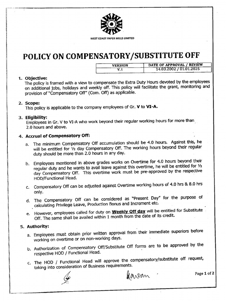 Compensatory Off Policy | PDF | Employment | Overtime