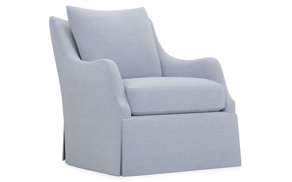 Finnigan Ocean Sky Performance Skirted Swivel Chair | Kathy Kuo Home