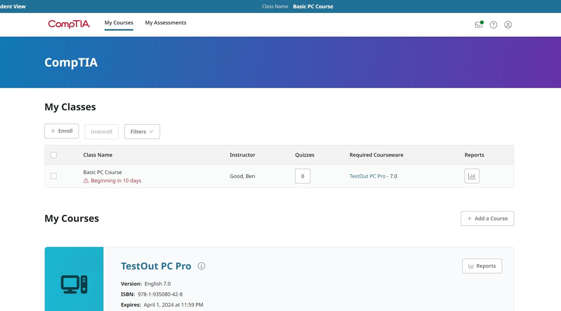 Use the Student View – CompTIA