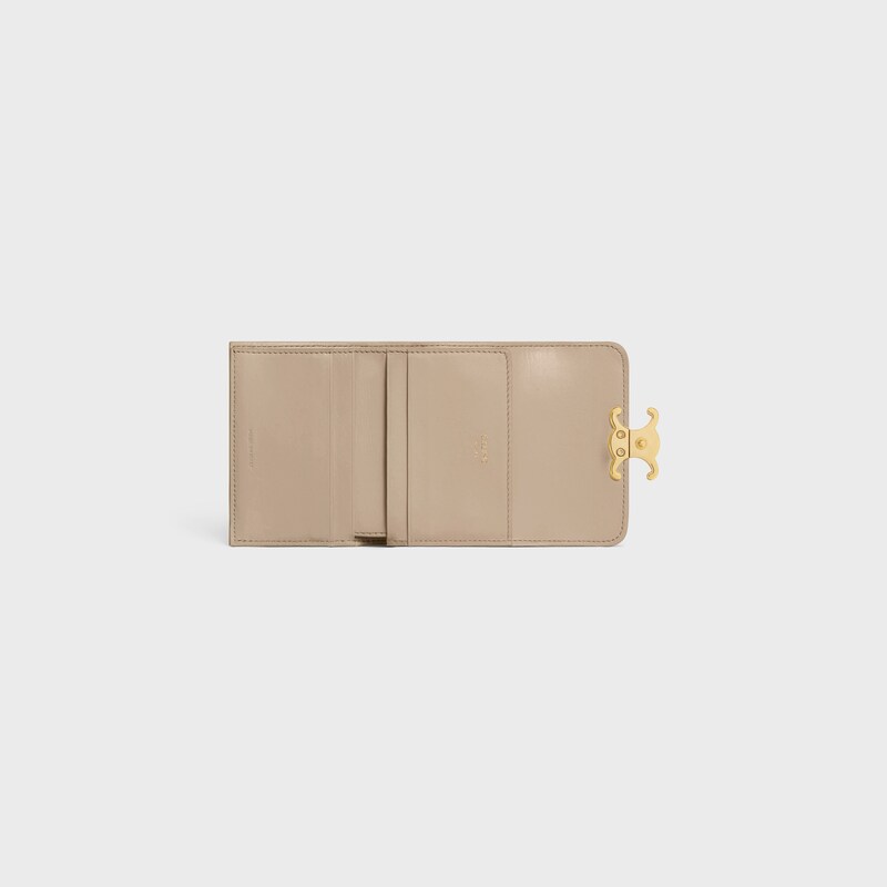 COMPACT WALLET WITH COIN TRIOMPHE in Shiny calfskin - CAPPUCCINO | CELINE