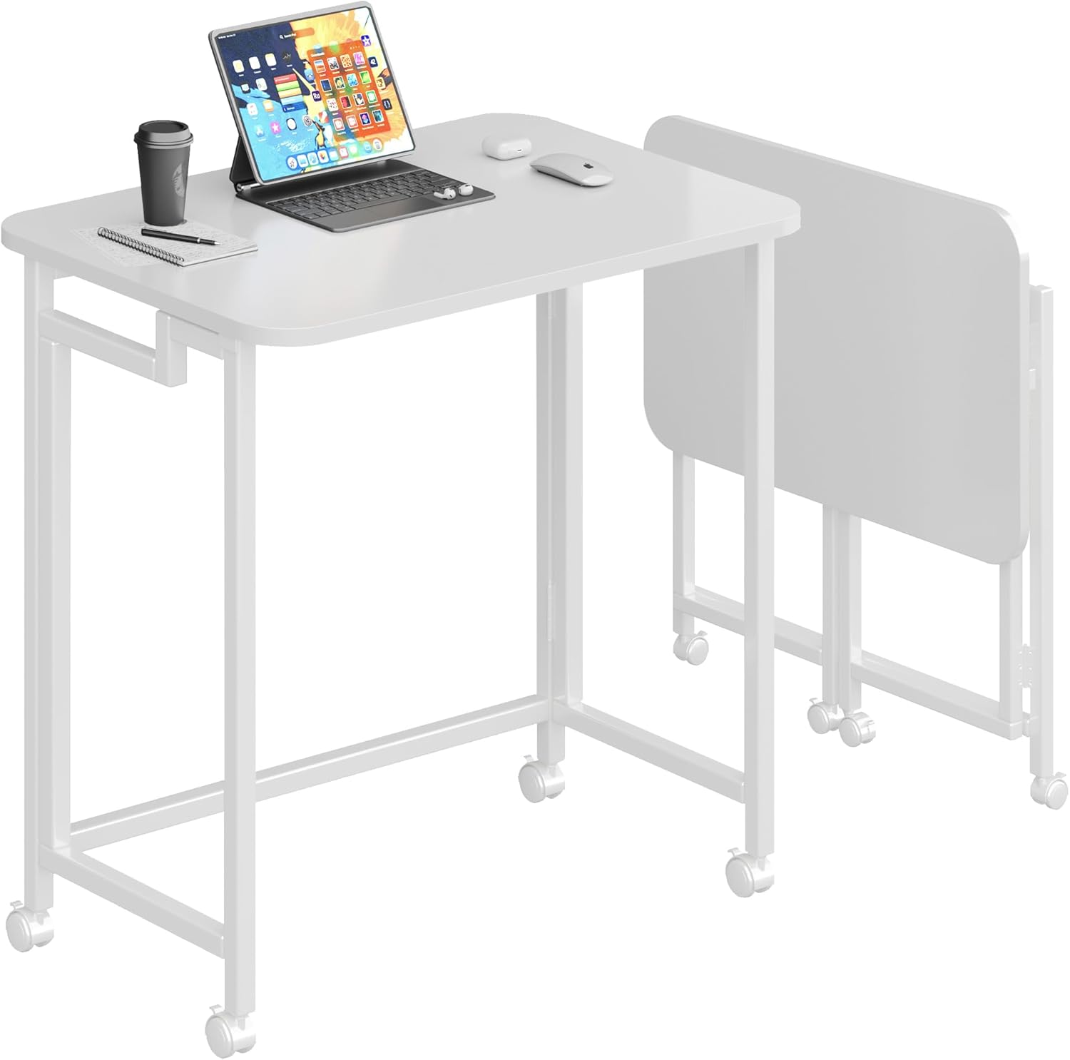 Amazon.com: JSB Folding Desk for Small Spaces,Mobile Portable Rolling ...