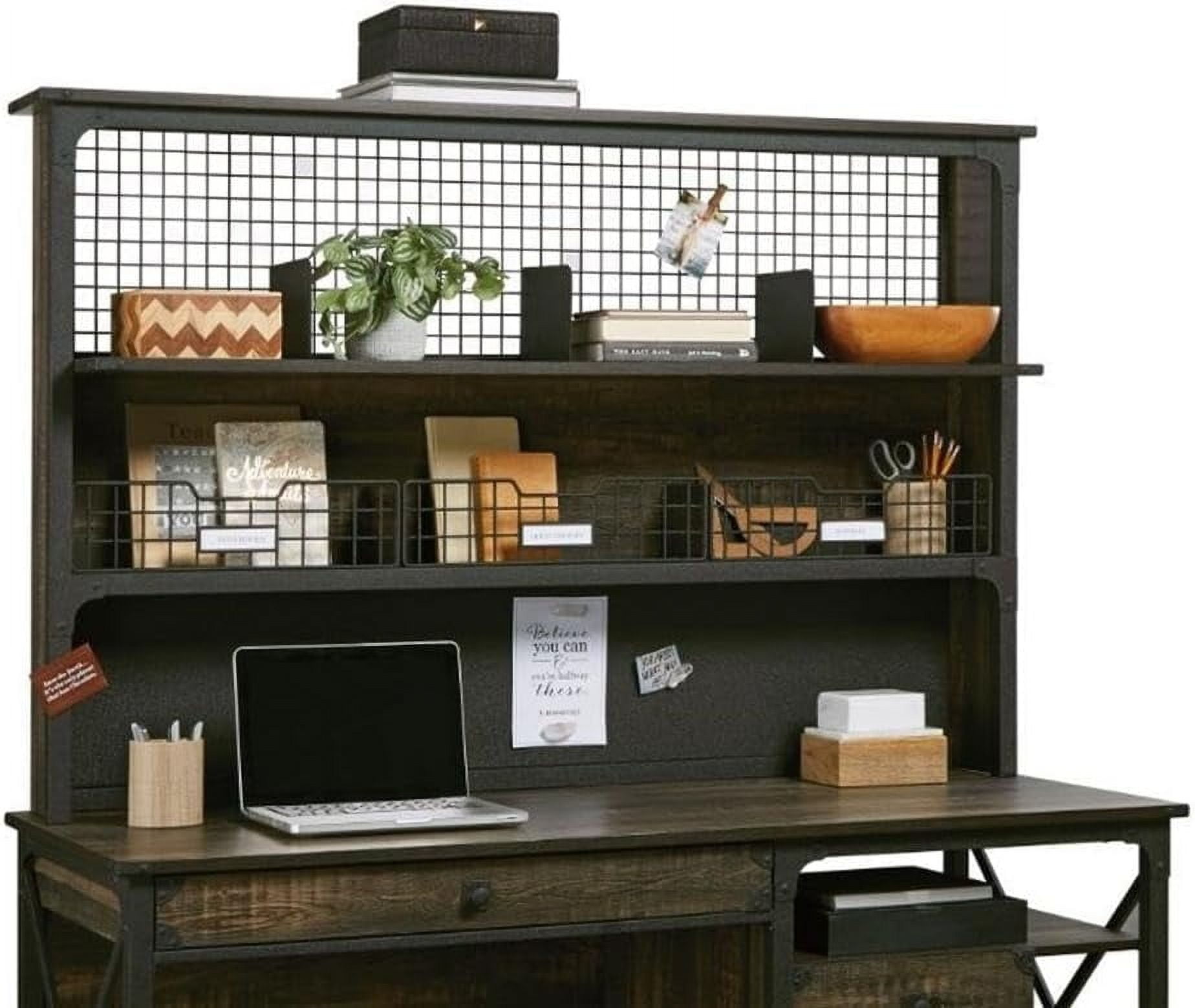 Amazon.com: Sauder Steel River Industrial Desktop Hutch in Carbon Oak ...